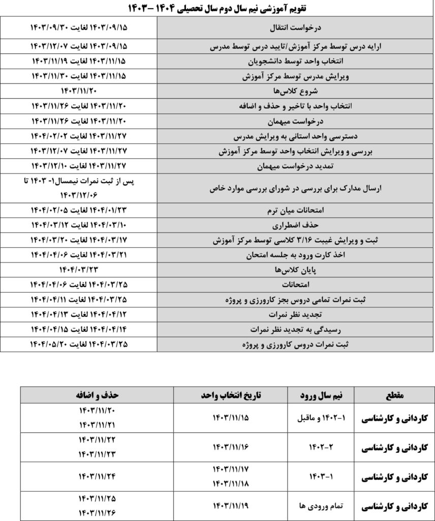 تقویم آموزشی نیم سال دوم سال تحصیلی 1403 - 1404